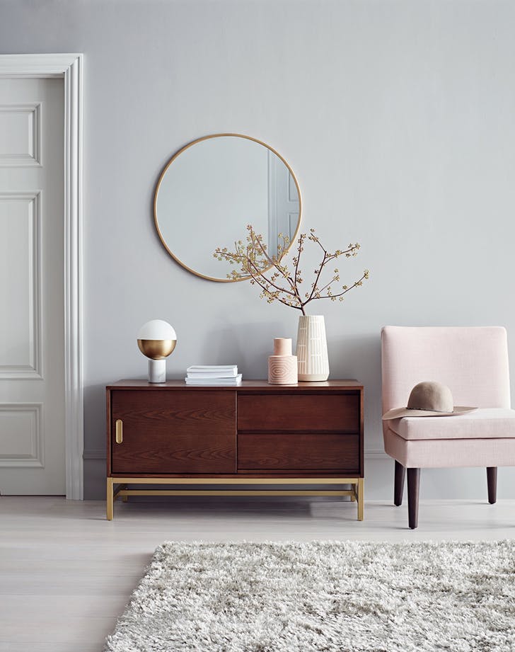 Los espejos redondos son diferentes a lo habitual. Utilízalos como pieza protagonista. Fotografía obtenida de Homedit